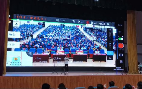 节目展演环节,通过视频讲解对无人机专业的核心课程、技术技能、就业情况等多方面进行了介绍,并在大屏幕上展示了由公司员工驾驶无人机测绘并通过专业软件合成的校园三维地图模型,通过模型可以实现目标地物的距离、面积的快速测量,该项技术有着广泛的应用前景。之后,无人机2101班张振伟同学驾驶大疆御2无人机演示了无人机驾驶员考证科目之一的“8字飞行”技术以及红外摄像、救援喊话等操作,赢得了现场观众的热烈掌声。无人机2101班袁灿杰同学进行了无人机蜂群的编队表演,通过室内基站、远程端控制软件等多重“黑科技”护航下,操作员控制多架无人机的飞行路线、飞行速度、空间坐标等参数以及LED灯的亮度和闪烁频率,将无人机编队变换成形式多样、美轮美奂的组合造型,以灯光传情,以光影达意,用科技感和灯光的魅力在空中营造出一场华丽的视觉盛宴,在场师生们纷纷拿出手机记录下这精彩的时刻。“这个无人机表演太震撼了,让我们充分感受到了学校职业教育活动周即将到来的浓厚氛围。”同学们纷纷表示自己看得意犹未尽,赞不绝口。