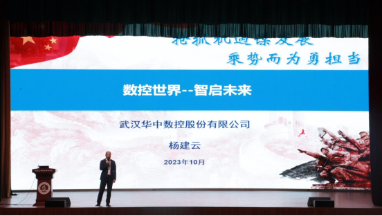 为进一步推动具有职业教育特色的校园文化建设,加强人才培养质量,拓宽校企合作渠道,打造实习就业平台,2023年10月18日晚,yl8858永利于员工活动中心开展“数控世界 智启未来”企业文化进校园专题宣讲会,本次会议邀请到武汉华中数控股份有限公司中北片区总监杨建云作为主讲,学院经理黄双成、团总支书记郭娇娇以及全体23级员工参加了本次活动。