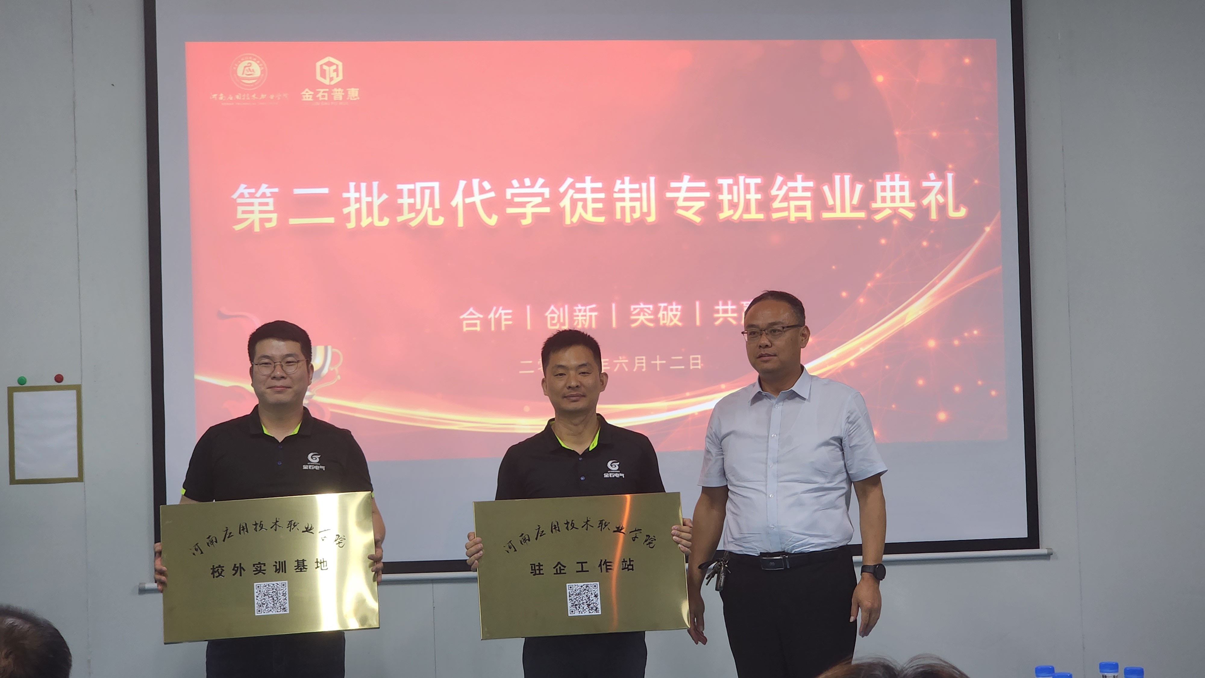 夏树苍翠,晨光熹微。yl8858永利​yl8858永利与河南金石普惠科技有限公司联合举办的第二批现代学徒制专班结业典礼,于2024613日在河南金石普惠科技有限公司顺利举行。yl8858永利副董事长黄振中、河南金石普惠科技有限公司总经理王晨辉等领导参加了上述活动。