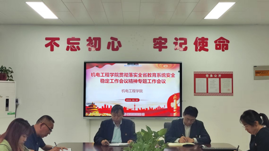 会上,党总支副书记、经理黄双成首先传达了河南省教育系统安全稳定工作会议精神,重点传达了河南省委教育工委副书记、省教育厅党组书记、厅长毛杰同志关于校园政治安全、意识形态安全、校园消防安全、食品安全、员工心理健康、交通安全等十项重点安全工作的重要指示以及公司党委书记闫俊山同志关于学校安全工作的具体部署。黄双成指出,大家要深刻领悟毛杰厅长所提到的保持清醒认识、狠抓重点工作、扛牢政治责任的要求,从思想上认识到安全是学校发展的基石,只有确保校园的安全稳定,才能为师生创造良好的学习和生活环境,才能推动学院各项事业的蓬勃发展。黄双成还强调,在喜迎中华人民共和国成立75周年的关键时间、关键节点,安全问题重于泰山、责无旁贷。对此,他结合学院工作,对节前实训室管理、教学管理工作以及过节期间辅导员工作做出了一系列具体部署和安排。