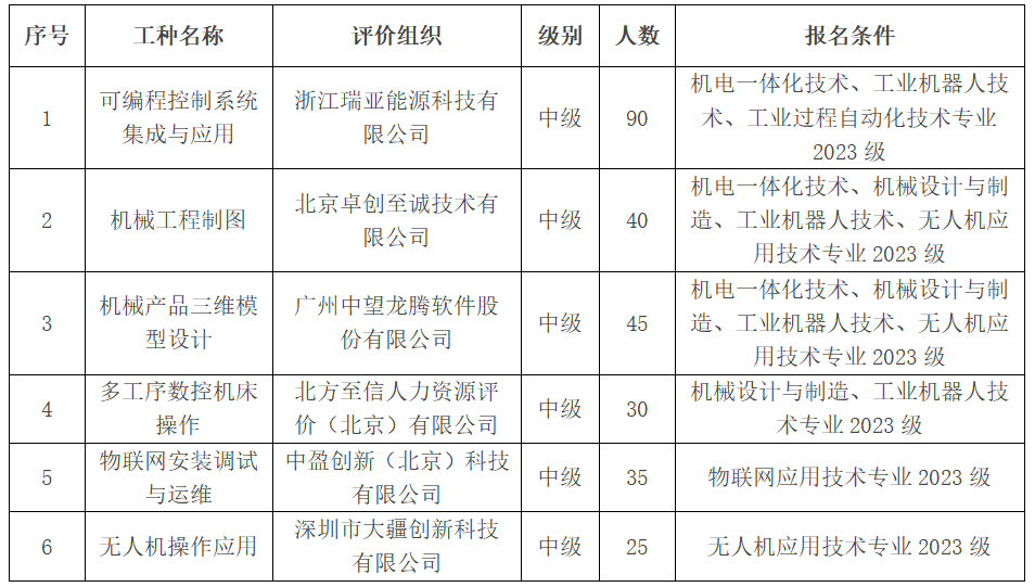 5.考证时间和地点:2024年11月12日~11月30日,均在校内各专业实训室进行。