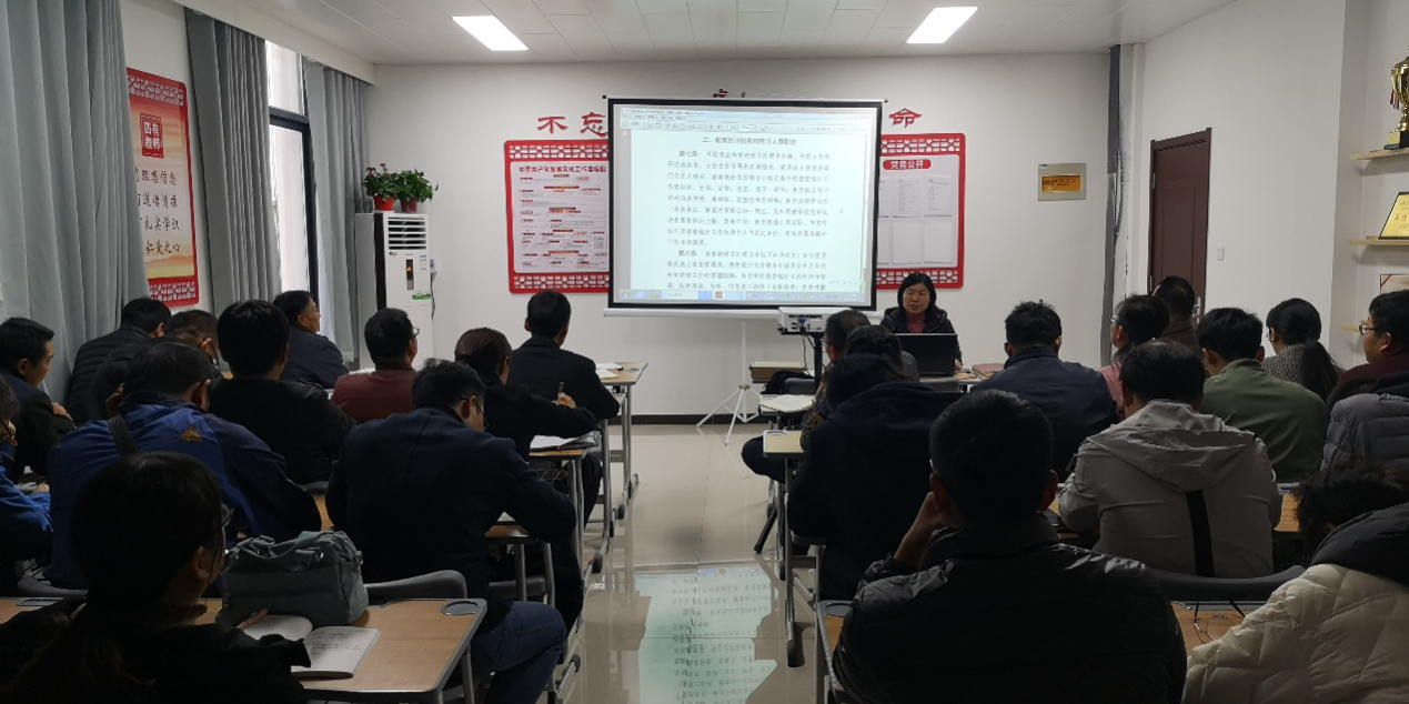 2019年11月19日下午4点半,在办公楼212党员活动室,公司党总支组织全体党员教师集体学习,学习由党总支副书记邓艳丽同志主持。