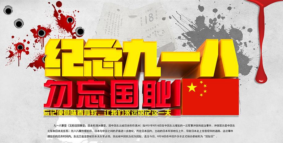 今天是一个重要的日子,距离1931年9月18日,“九一八”事变爆发已有85年了。九一八是国耻日,是日本帝国主义长期以来推行对华侵略扩张政策的必然的结果。那一年起开始了对东北人民长达14年之久的奴役和殖民统治。今天让我们一起勿忘国耻,勿忘国殇,吾辈自强!下边为大家回顾918事变历史简介。我们纪念历史,不是要延续仇恨,只有牢记教训,和平才会一直和我们同在。