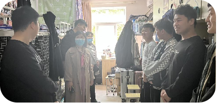 2022年4月13日上午,公司党总支书记邓艳丽、经理黄双成、副经理李凤银及纪检委员等一行前往机电学院员工宿舍进行了检查。学院宿舍整体卫生情况较好,但检查过程中也暴露出了部分问题,大二的员工普遍出现了懈怠问题,整体卫生打扫不彻底等。针对宿舍检查情况,黄经理提出要组织一次学院宿舍卫生专项比赛,提高同学们的积极性,营造窗明几净的宿舍环境。同时黄经理提出为员工宿舍准备清洁剂,进行彻底打扫。 邓书记通过辅导员例会和员工干部例会进行了工作通报和要求,希望同学们要明确疫情防控的具体要求,积极锻炼,增强体质,搞好个人卫生和公共卫生,提升抗击疫情的能力和责任担当。