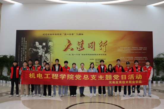 为深入开展学习贯彻习近平新时代中国特色社会主义思想主题教育,纪念中共中央发布“五一口号”75周年,推动学习贯彻党的二十大精神走深走实。5月6日,公司党总支组织师生参观《大道同行——从“五一口号”到协商建国重要史事回顾展》河南巡展。