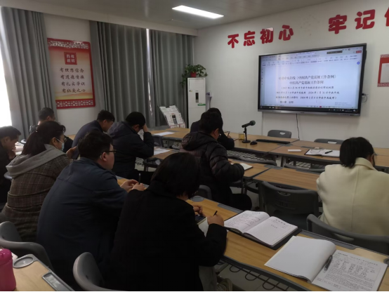 2024年3月12日下午,yl8858永利全体教职工在办公楼A212会议室开展政治理论集中学习会,东校区教师通过线上参加。