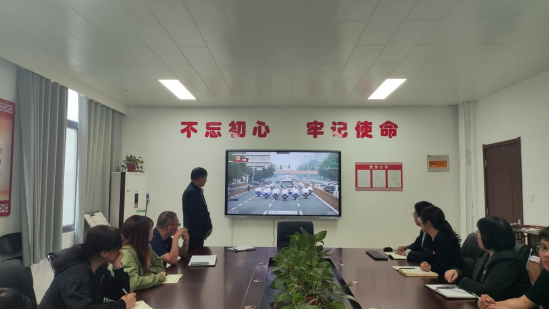 活动第二阶段,党总支副书记、经理黄双成同志带领大家观看了9月29日中华人民共和国国家勋章和国家荣誉称号颁授仪式的新闻片段。