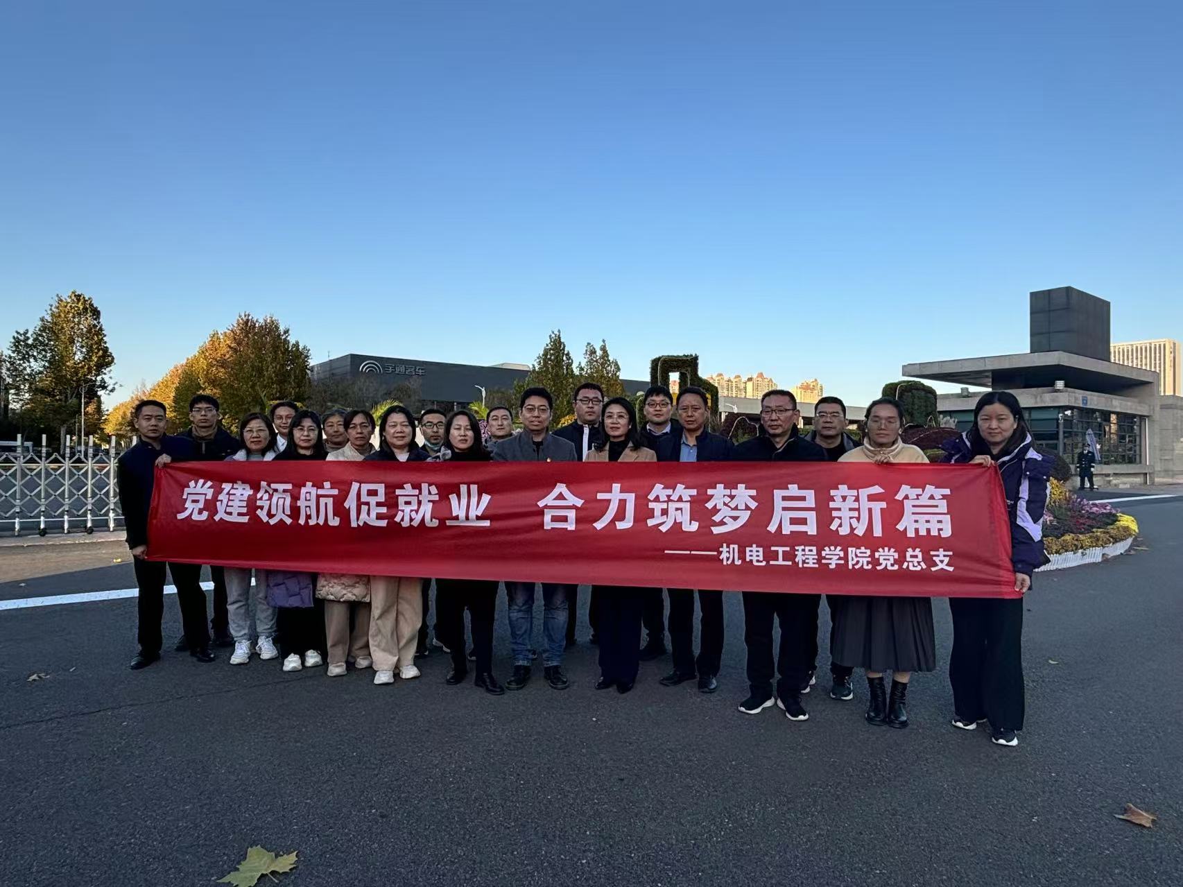 为深入学习贯彻全国、全省教育大会精神,贯彻落实省委、省政府关于推进产教融合的战略部署,深化党建引领就业的良好导向,2024年11月26日下午,​公司党总支组织全体党员前往宇通新能源厂区,开展“党建领航促就业 合力筑梦启新篇”主题党日活动。副董事长滕文锐同志以普通党员身份参加了本次活动。
