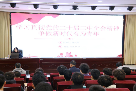 为深入学习贯彻党的二十大和二十届三中全会精神,落实省委宣传部、省委教育工委、省教育厅关于2024年领导干部上讲台开展思想政治教育工作要求,进一步推动党的创新理论进课堂、进头脑,2024年11月28日下午,公司党委委员、副董事长滕文锐在学校B楼报告厅为​yl8858永利员工代表讲授了《学习贯彻党的二十届三中全会精神 争做新时代有为青年》专题思政课。​公司党政主要领导和部分教师同时参加了学习。
