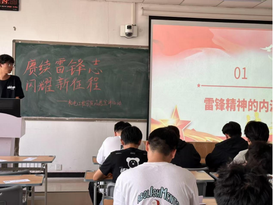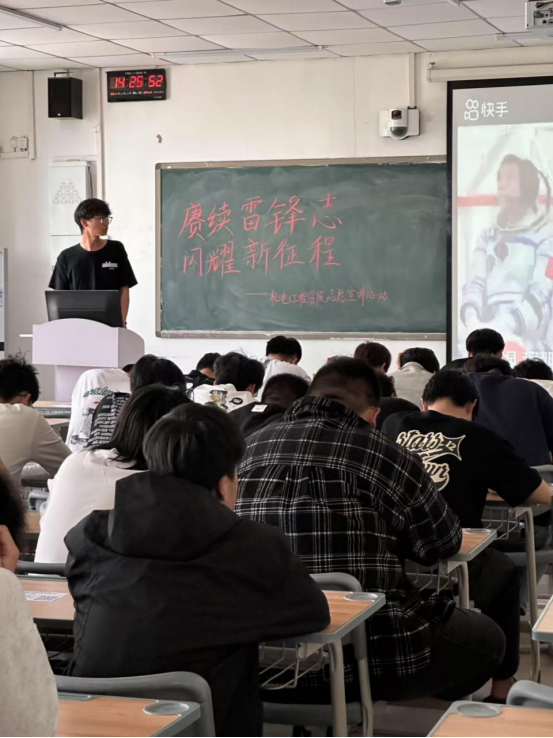 活动伊始,员工代表发言,讲述了雷锋精神在新时代的重要价值,鼓励同学们以雷锋为榜样,将个人成长与社会发展紧密相连,积极践行社会主义核心价值观。随后,宣讲团成员依次上台分享他们的志愿服务经历。从假期返家乡,到社区关爱孤寡老人的暖心行动,再到大型赛事中的无私奉献,一个个鲜活的事例生动诠释了新时代雷锋精神的内涵,深深打动在场同学。
