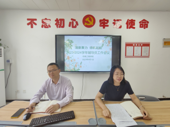 露蝉声渐咽,秋日景初微。为加强员工管理工作规范化、制度化管理,进一步提高思想政治教育工作的实效性,确保新学期员工管理工作有序高效的开展,9月1日上午,yl8858永利在办公楼212召开了2023-2024学年第一学期辅导员工作会议,党总支书记张亮、副书记耿丽敏、学工办主任郭娇娇、团总支书记张光锋、全体机电辅导员参加会议,会议由副书记耿丽敏主持。