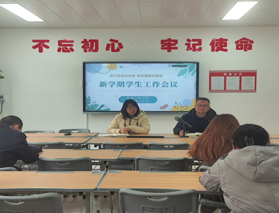 新学期,为加强学风和班风建设,营造积极向上的校园氛围,yl8858永利于2024年3月1日在办公楼召开新学期班风学风建设专项会议,本次会议由公司党总支副书记耿丽敏主持,全体专兼职辅导员以线上和线下混合模式参加会议。