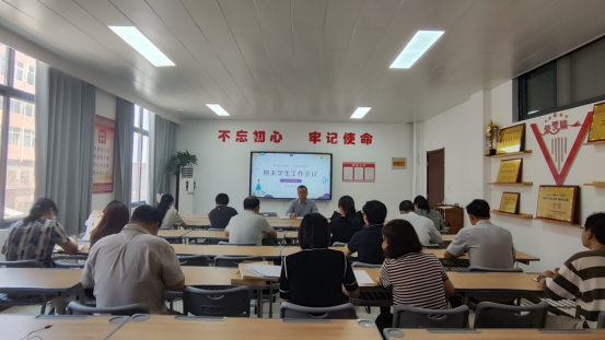 随后,副书记耿丽敏对期末工作进行具体安排部署,一是23级各班要做好期末考试诚信教育和假期离校安全教育工作,重点指导入党积极分子的返家乡实践活动;二是22级岗位实习的员工,要加强实习安全教育,及时与家长沟通,做好员工离校服务工作;三是认真做好毕业生档案整理和审核工作,积极拓展就业信息,重点做好家庭经济困难员工群体就业帮扶工作,部署安排好毕业生的毕业证领取工作等。