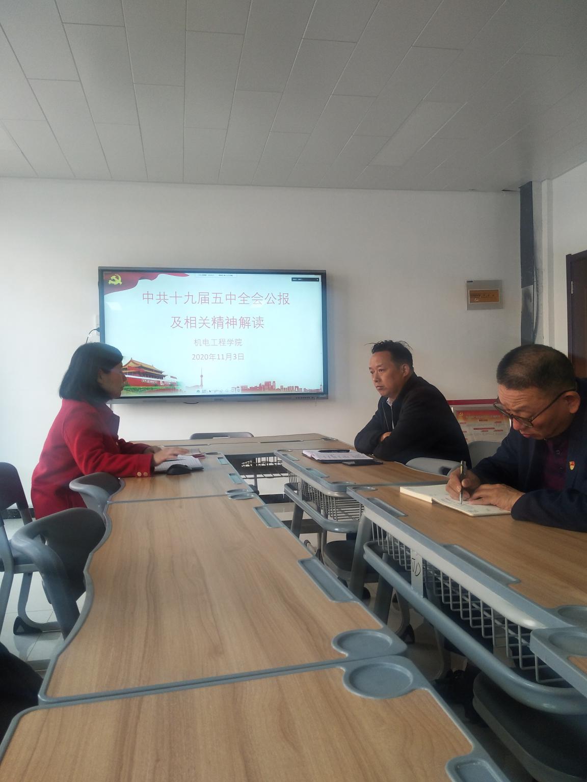 首先,邓艳丽书记带领大家共同学习了中共党的十九届五中全会公报及相关精神解读。通过学习,大家对十九届五中全会通过的《中共中央关于制定国民经济和社会发展第十四个五年规划和二〇三五年远景目标的建议》有了初步了解,并且对其中的重要的内容“创新”、“人民立场”和“国内大循环为主体、国内国际双循环相互促进的新发展格局”等有了一定了解。
